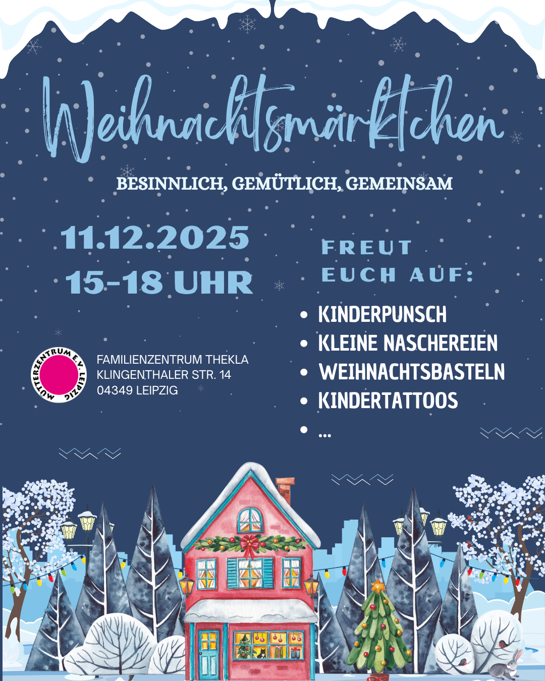Wir freuen uns auf einen besinnlichen Nachmittag mit euch. Freut euch auf Leckeres, Weihnachtsbasteln und gemütliches Beisammensein. Euer Thekla-Team.